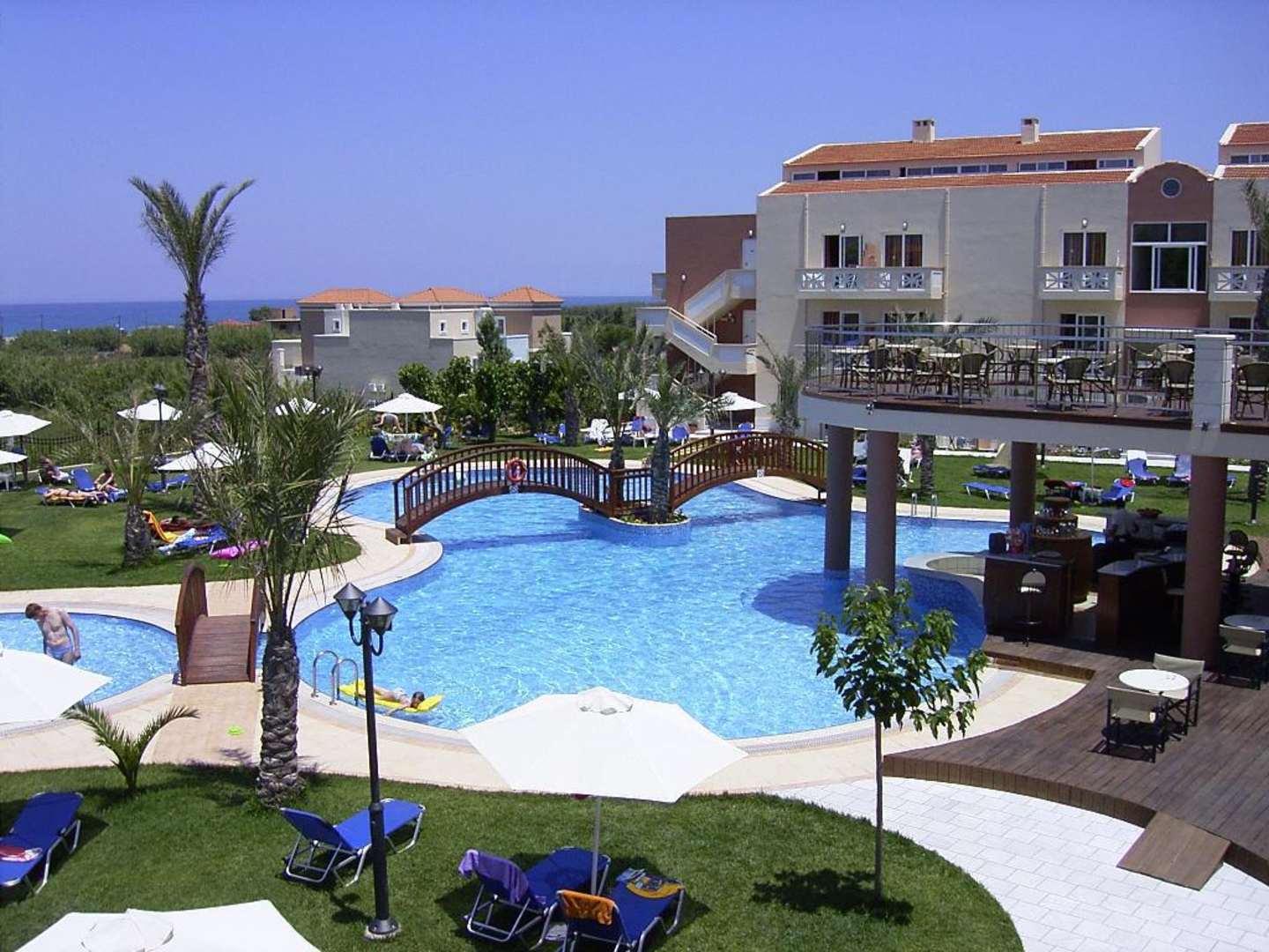 Überblick über die Pool- und Hotelanlage