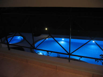 Vom Balkon aus auf kleinen Pool geschaut