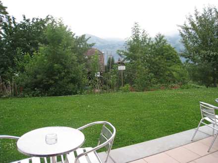 Die Terrasse mit Wiese vor dem Zimmer