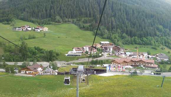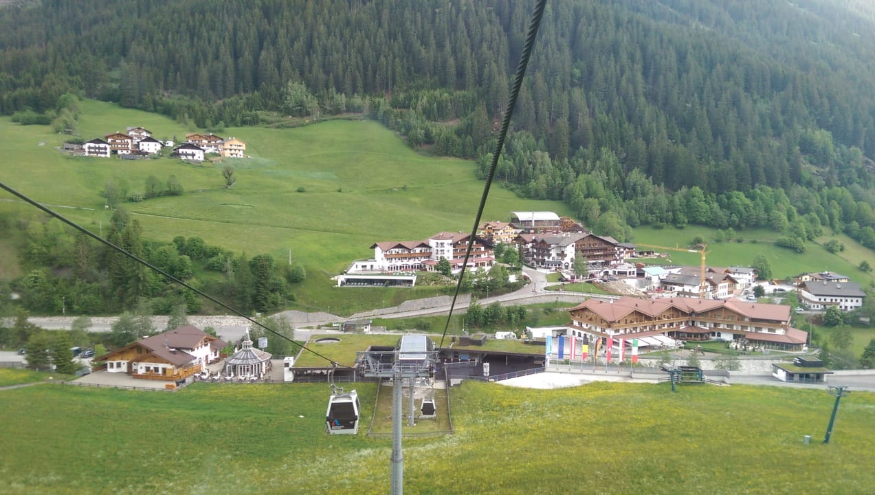 Mitte im Bild Hotel Seeber von der Bergbahn aus.