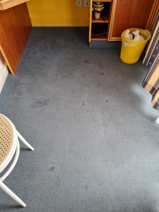 ZimmerTeppichboden im gesamten Zimmer völlig verdreckt. Hotel wirbt im Internet für seine angebliche Sauberkeit.