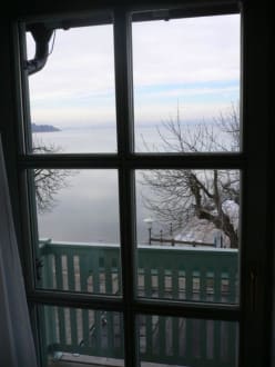 Blick durch die Balkontür auf den Ammersee