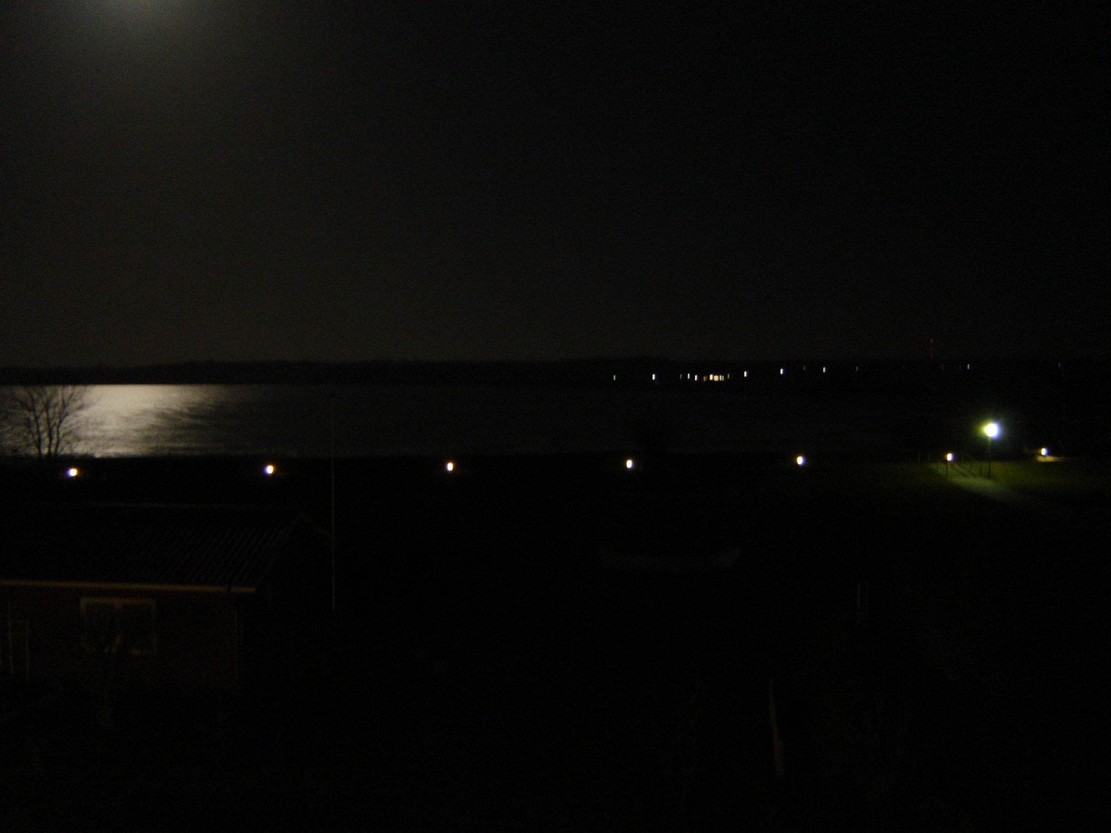 Blick vom Zimmer auf den Strand bei Nacht
