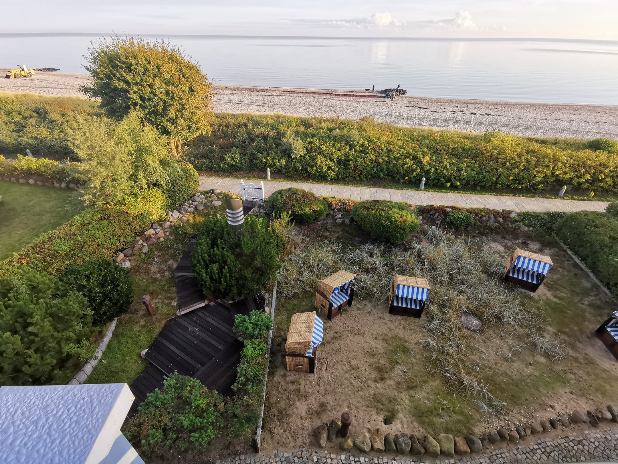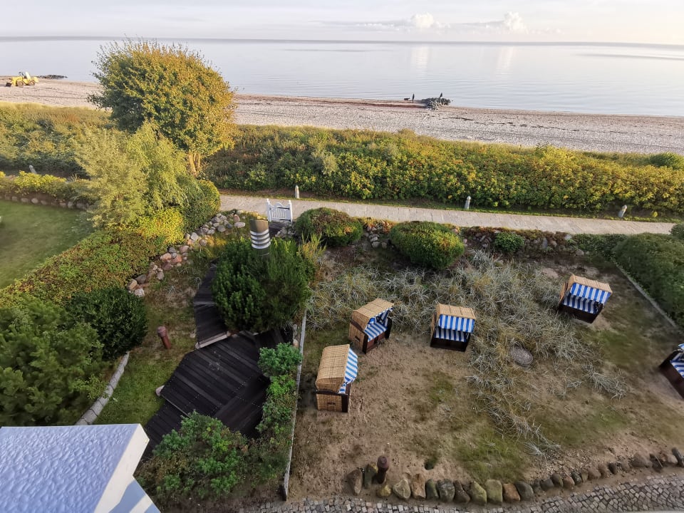 AusblickBlick aufs Meer vom Appartement und unten sieht man die Strandkörbe innerhalb der Hotelanlage. Muss schön im Sommer sein.