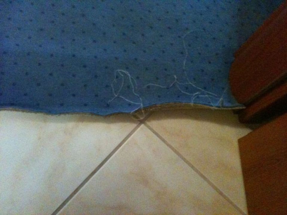 Schelcht verlegter Teppich zwischen Zimmer und Bad