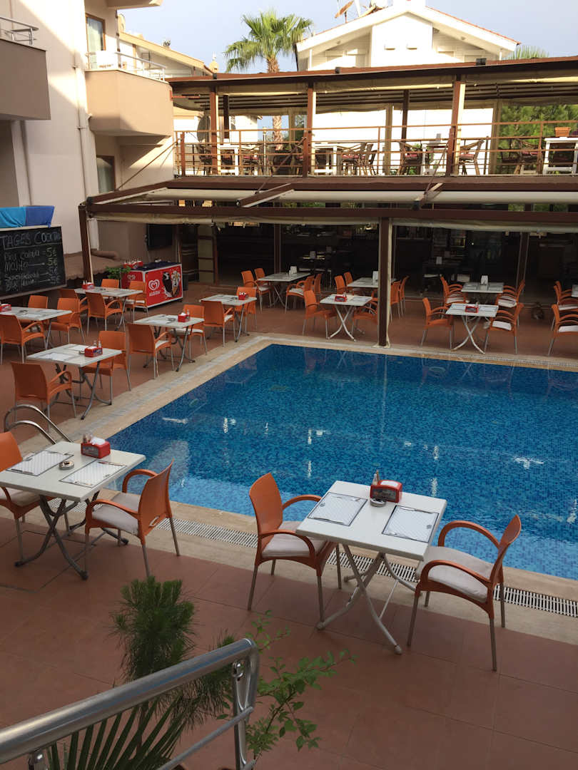 Die Pool Zeit endet um 18:00 Uhr. Dann werden die Tische für das Abend Buffet aufgebaut.