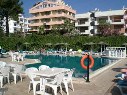 Bar przy basenieHotelowy basen i barek. Dużym plusem jest odgrodzenie żywopłotem od ulicy, co w Marmaris rzadko się zdarza.