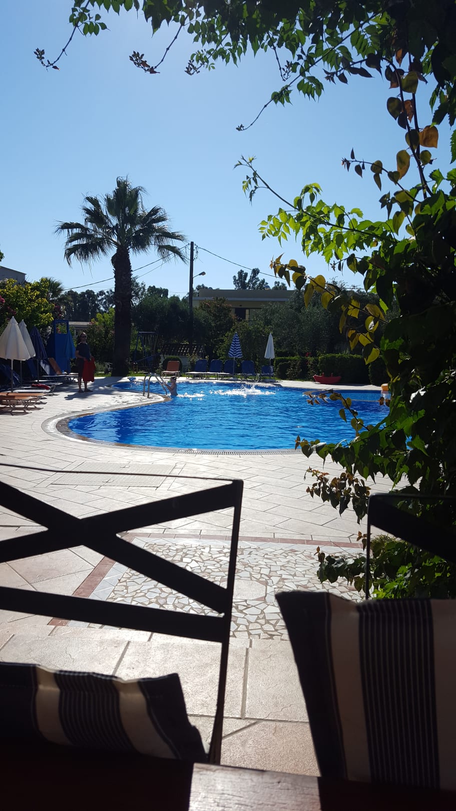 Blick von der Bar auf den Poolbereich.