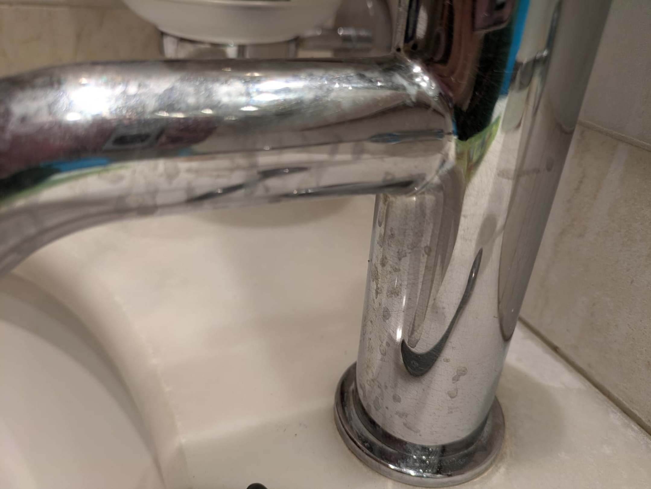 Keine gereinigte Armatur im Bad.