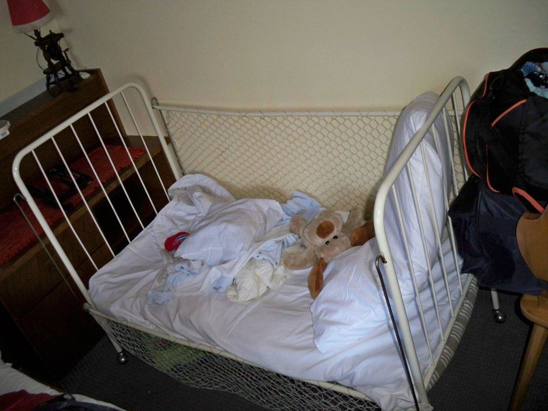 Die Matratze hörte sich an, als wäre sie mit Stroh gefüllt, war hart und völlig durchgelegen. Das "Fischernetz" hatte gelbe und braune Flecken.