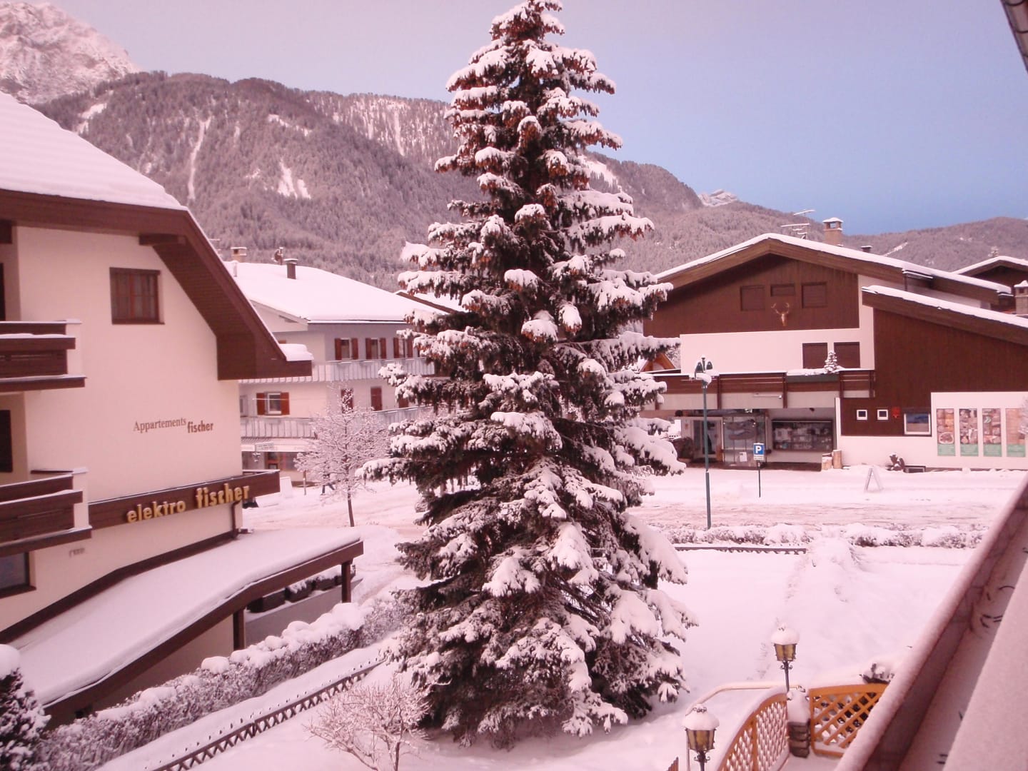 Widok z balkonu zimową porą