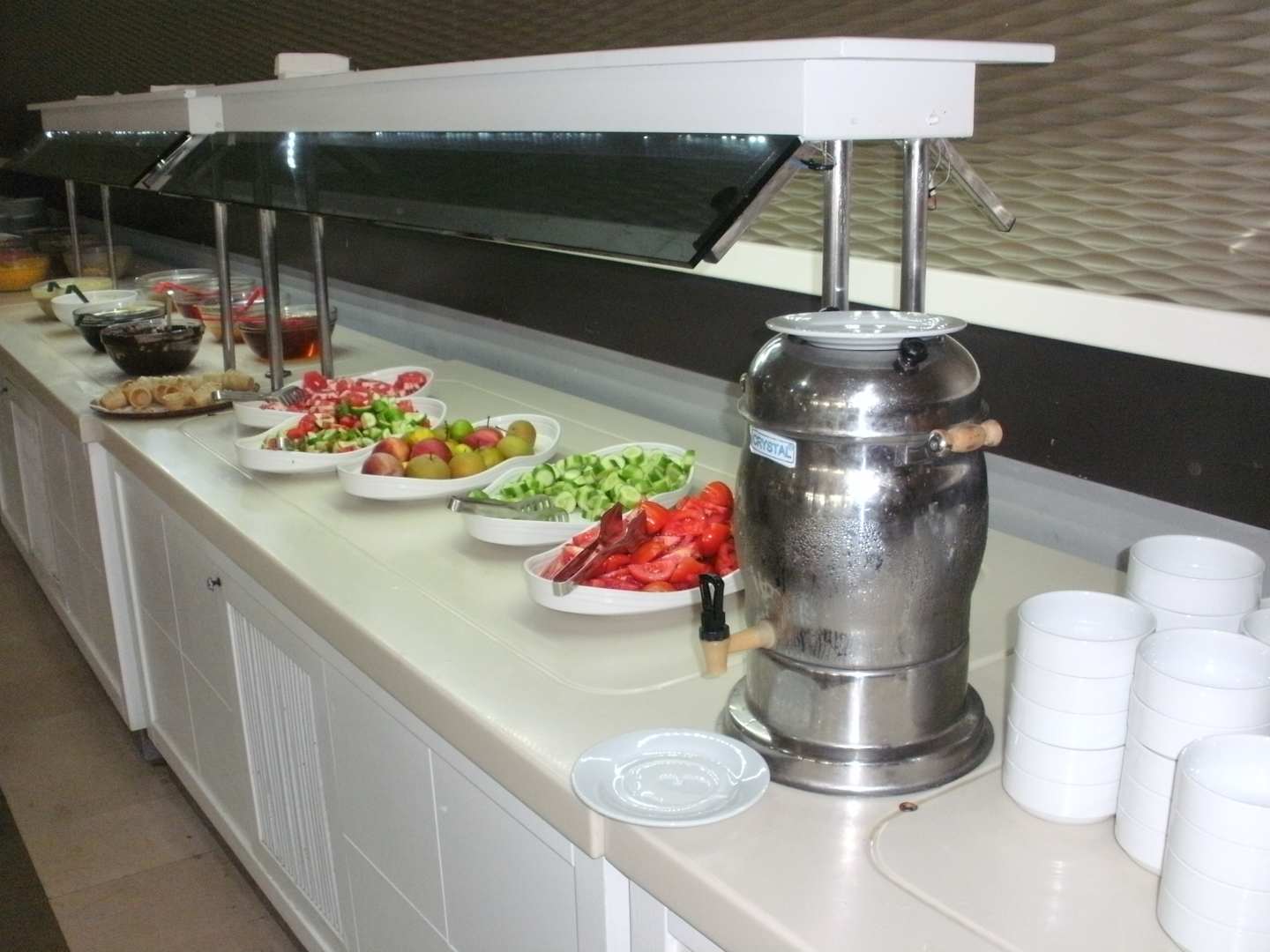 Obst, Gurken und Tomaten geschnitten,