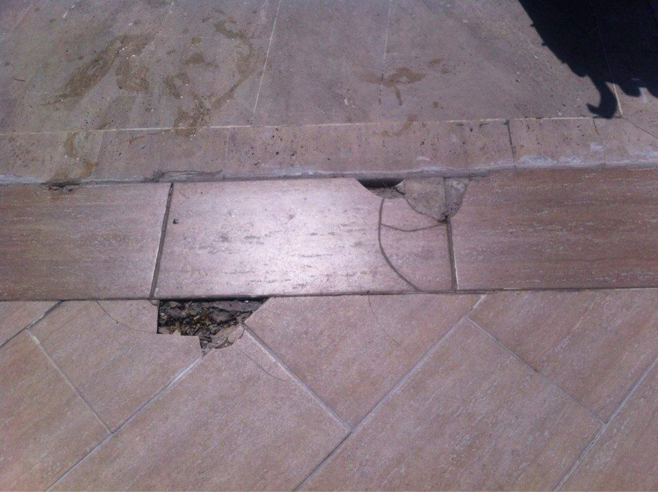 Löcher in den Fliesen im Barfussbereich am Pool