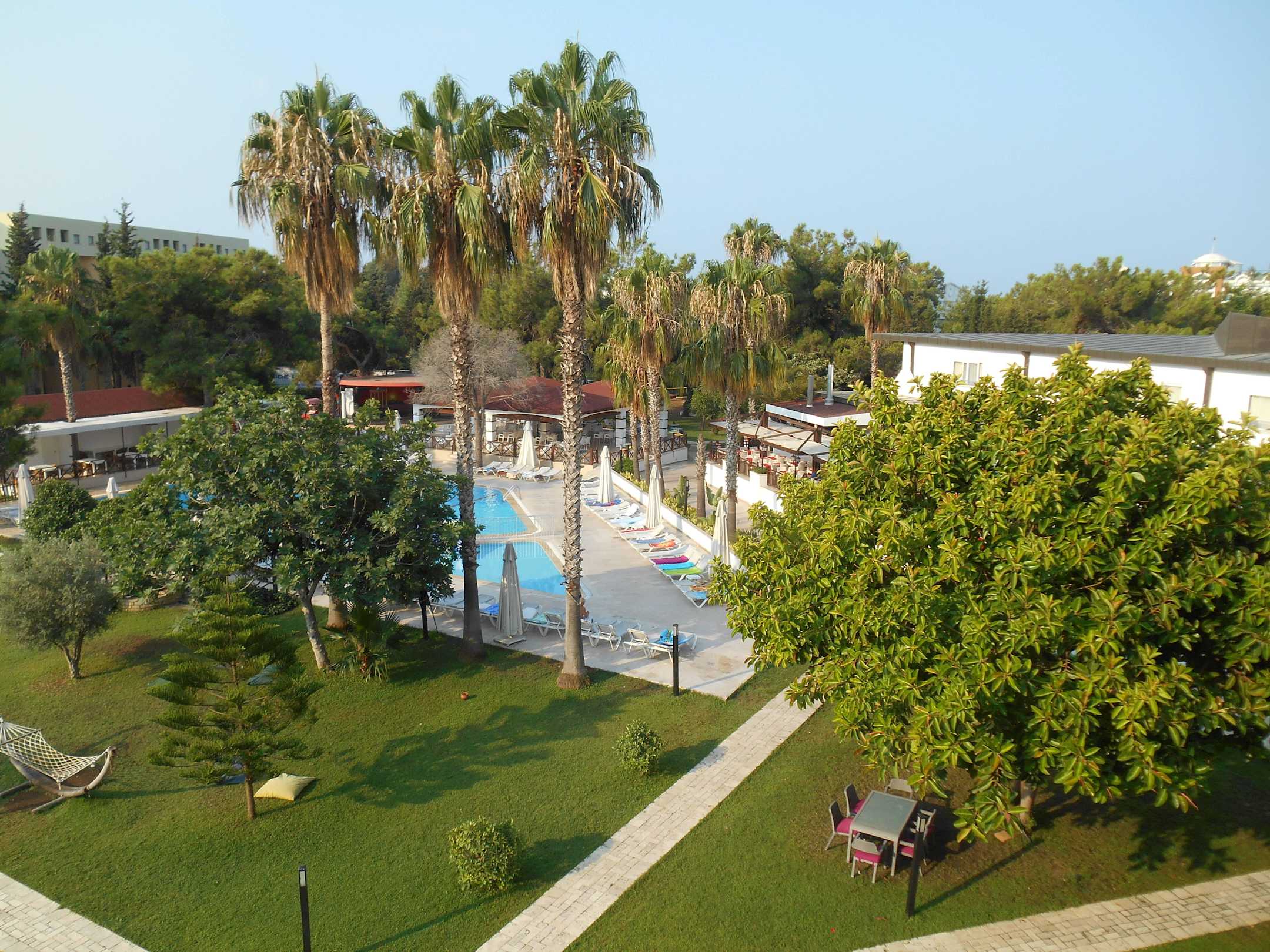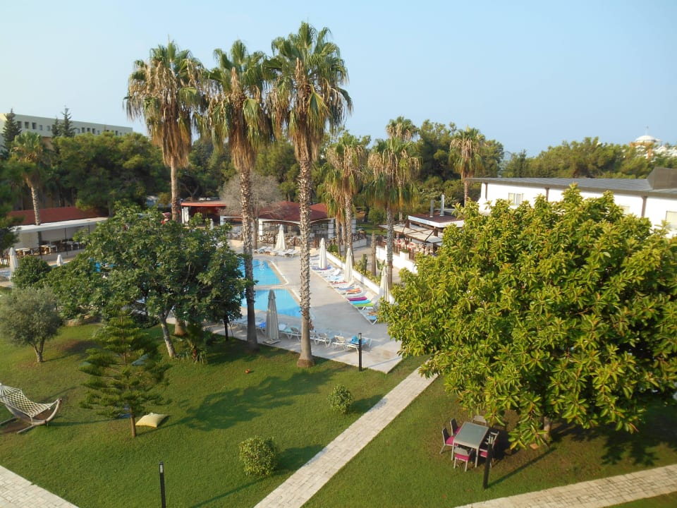 Blick vom Balkon auf den Pool