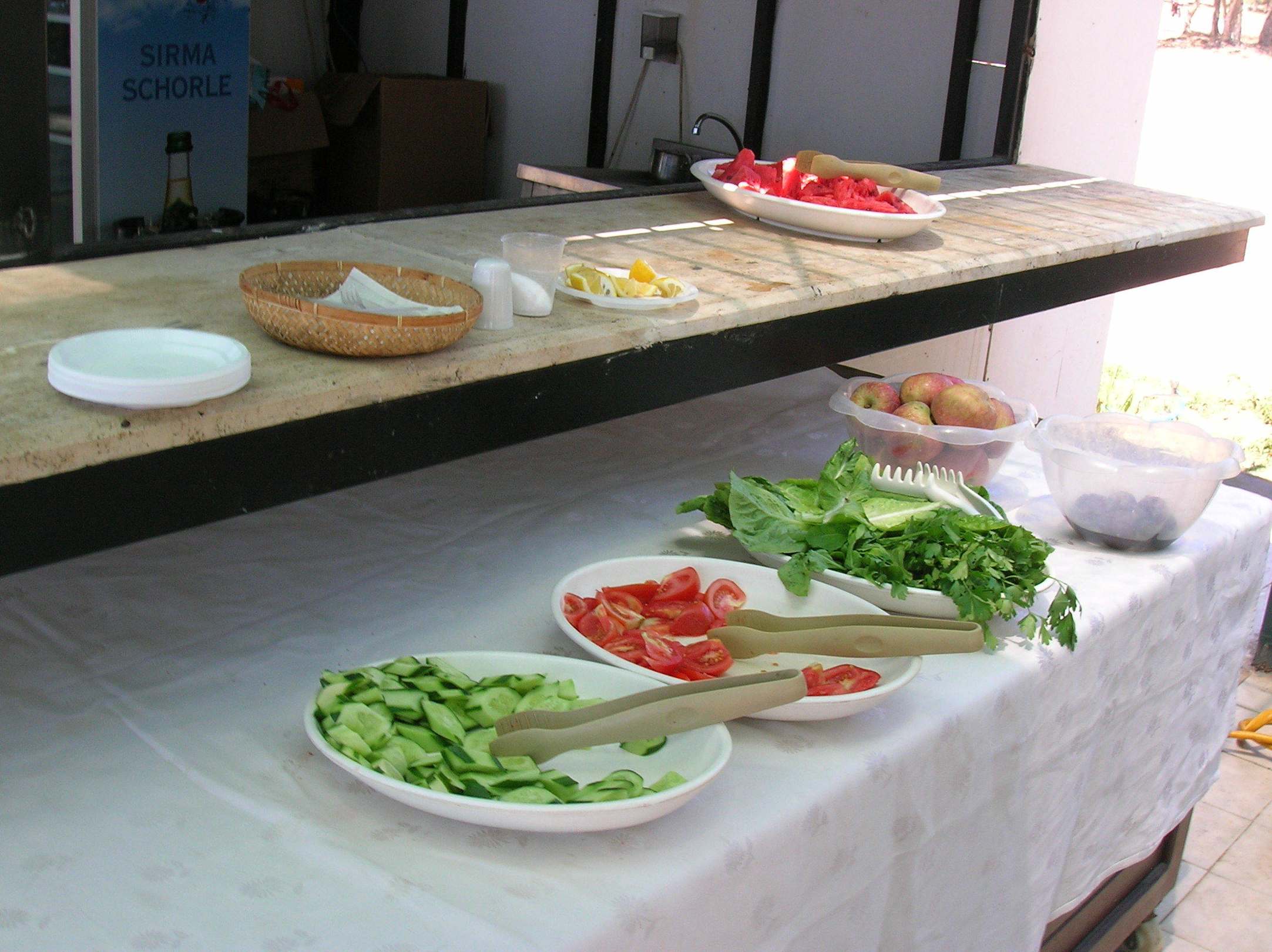Mittagessen am Strand m. Plastikbesteck