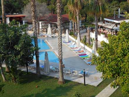 Blick vom Balkon auf den Pool