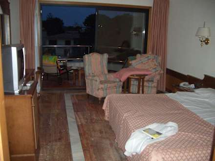 angenehmes Ambiente mit Riesenbett, Minibar, Safe, großem Balkon, Telefon und TV