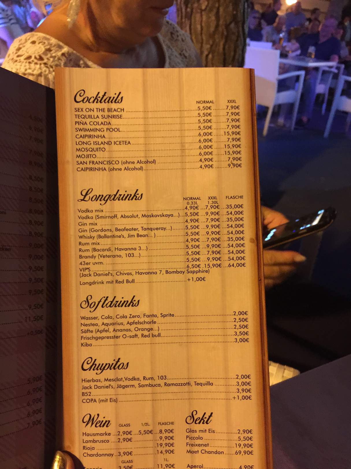 Preisliste in der nahen tollen Mosquito Sportsbar