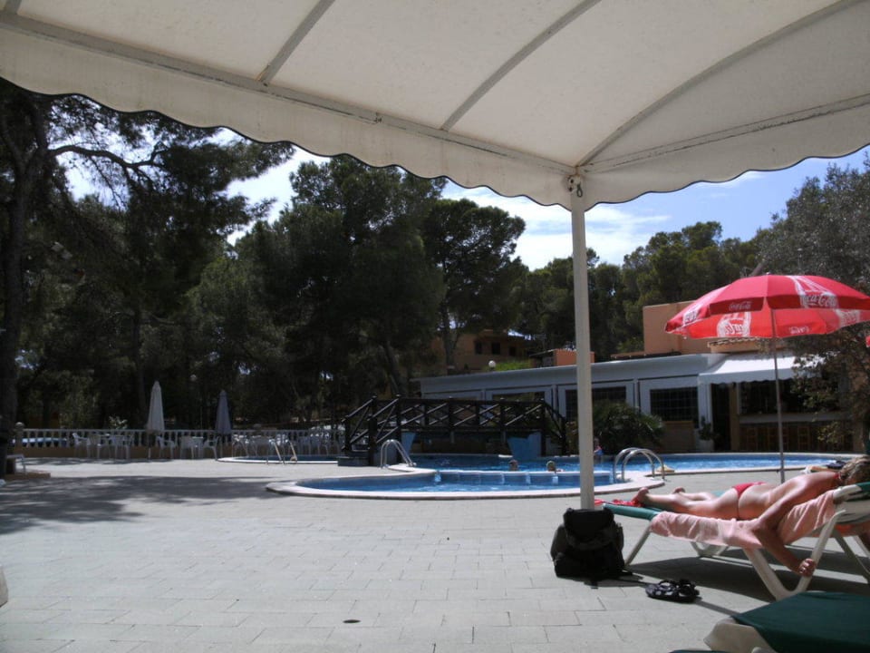 Blick vom Pool auf Restaurant-Terrasse