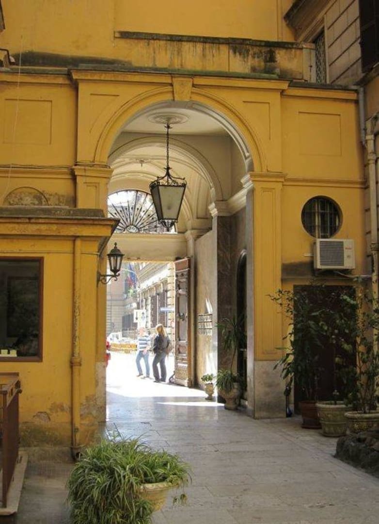 Durch diese Tuere muss man, wenn man zur Pension moechte. Leider findet hier auch die Anlieferung fuers Restaurant statt - und die Tuere steht morgens auch offen, sodass der Strassenlaerm der XX Settembre schoen eindringt