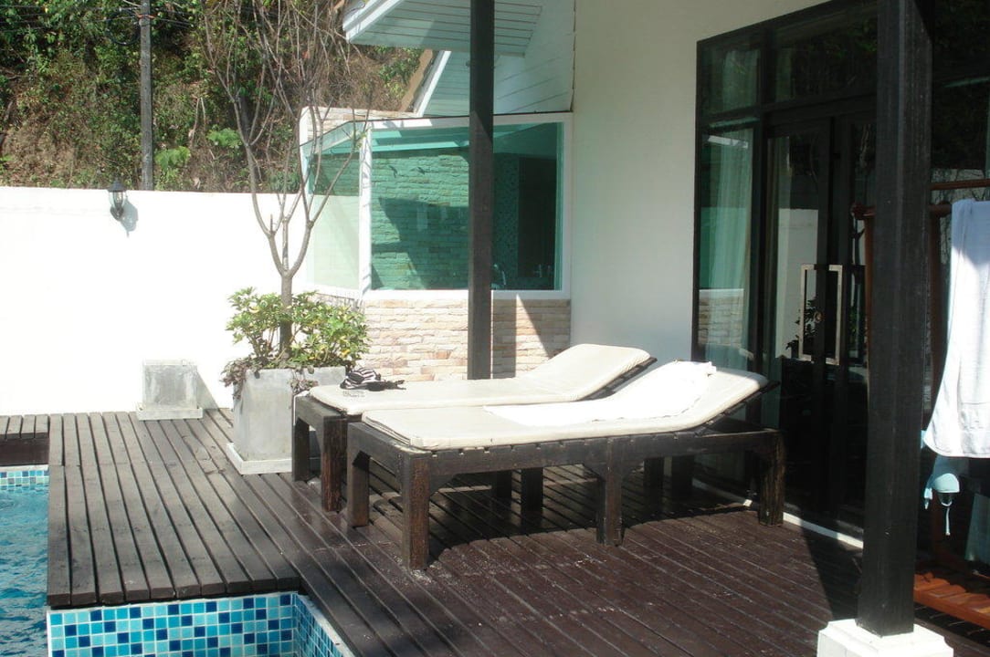 Eigener Pool mit Sonnenliegen