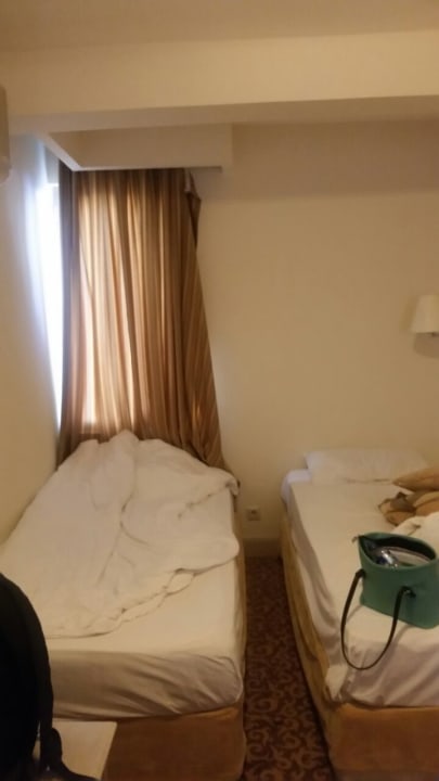 ZimmerAbgerissener Vorhang ,hängte so 10 Tage ,die Reinigungskraft interessierte es nicht ,sehr eng zwischen den Betten..