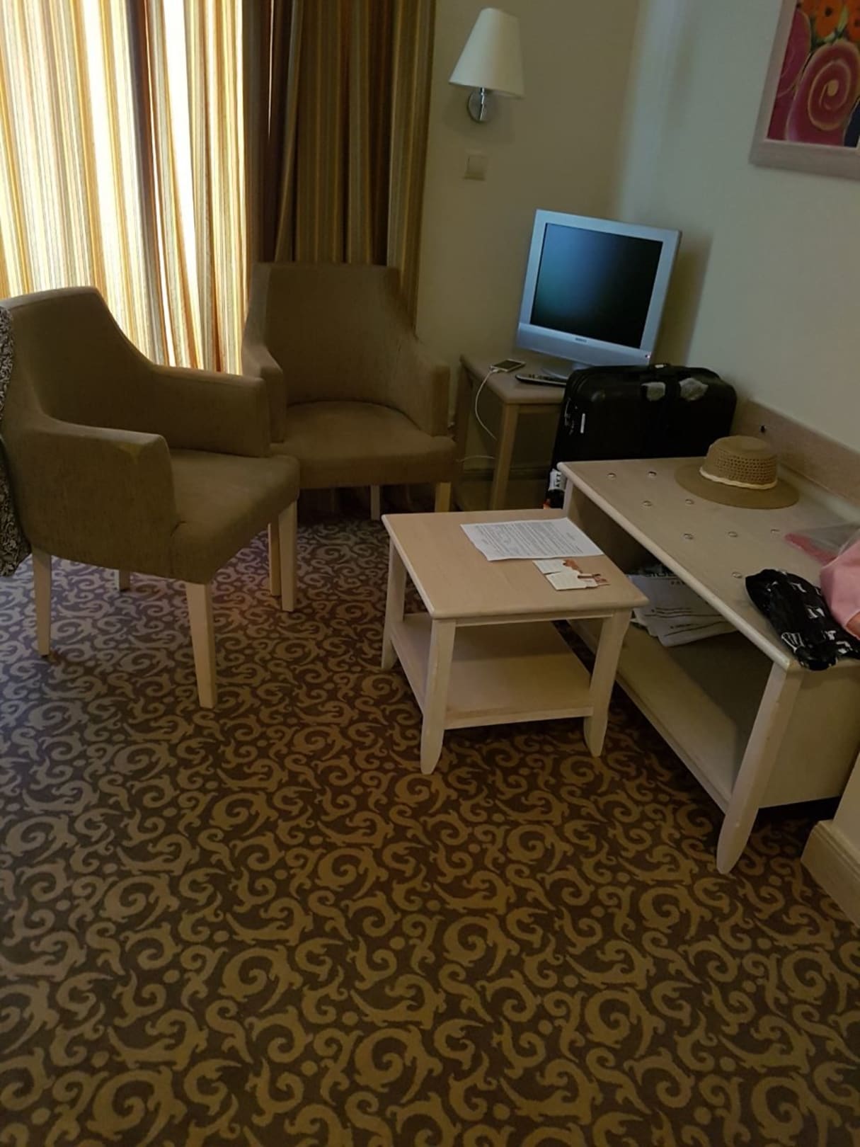Alte ,abgenutzte ,mit Flecken behaftete Möbel,kleines Fehrnseher...