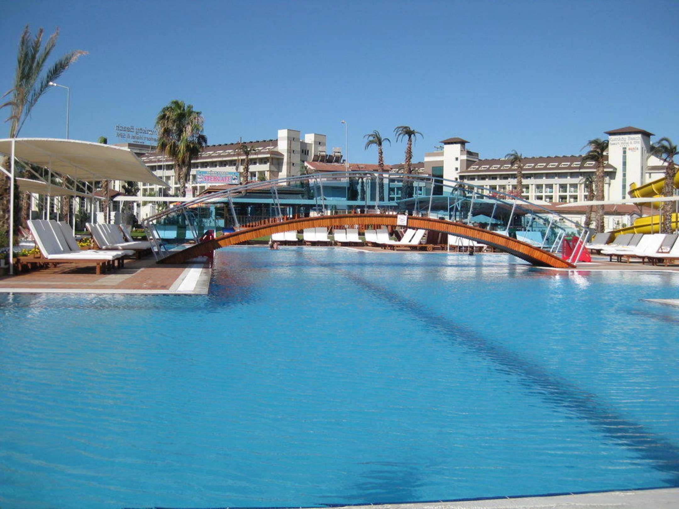 Riesige Poolanlage mit Brücke