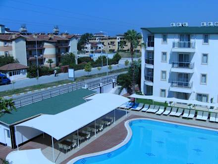 Ausblick vom Balkon zum Pool
