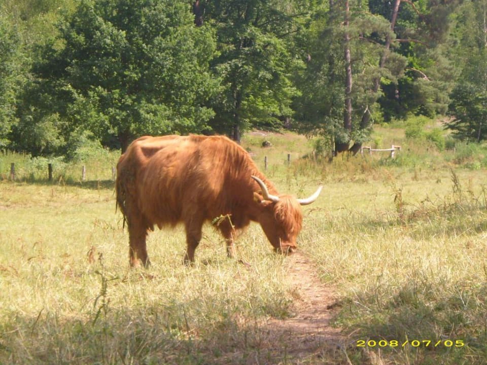 HighlanderAus der Homepage: Wenn Sie die Sieberzmühle besuchen und entlang des Baches ins Siebenbrunnental wandern, werden sie urige, braune Zottelrinder mit ausladenden, spitzen Hörnern entdecken. Sie wirken im Einerlei der rot oder schwarzbunten Rinder auf unseren Weiden wie Bananen im Kartoffelacker. Sie sind die idealen Landschaftspfleger, die Wiesen auf denen diese Kühe weiden, werden extensiv bewirtschaftet. Die Tiere leben das ganze Jahr auf der Weide und brauchen auch im Winter keinen Stall. Ihr dickes Fell trotzt Wind und Wetter. Sie fressen Gräser, Kräuter, Binsen und sogar Disteln und produzieren ausschließlich Milch für den Nachwuchs, sowie außergewöhnlich schmackhaftes Fleisch. Kaum ein anderes Rind hat seine charakteristischen Merkmale über einen so langen Zeitraum in unveränderte Form beibehalten, wie das Hochlandrind. Sein Vorfahre ist der Keltische Ochse.