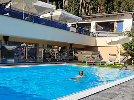 PoolPool, dahinter die Pool-/Gartenzimmer, darüber die Terrasse.