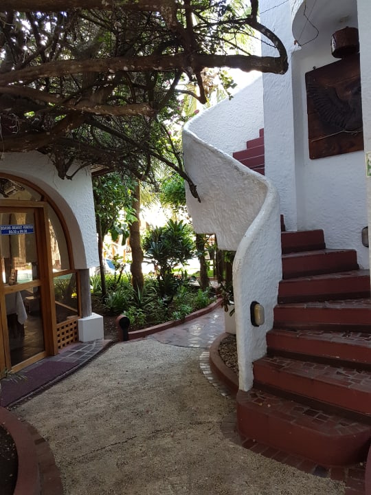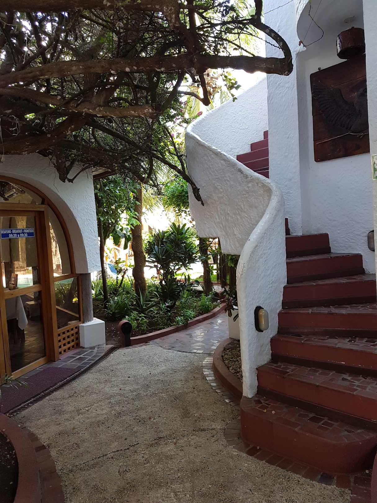 Relativ steile Wendeltreppe, Eingang zum Restaurant