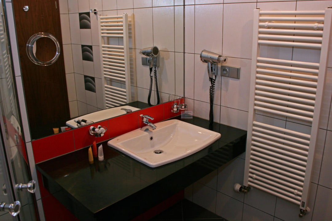 Das WaschbeckenDie Tür geht auf und schon steht man am Waschtisch mit dem großzügigen Handtuchwärmer...