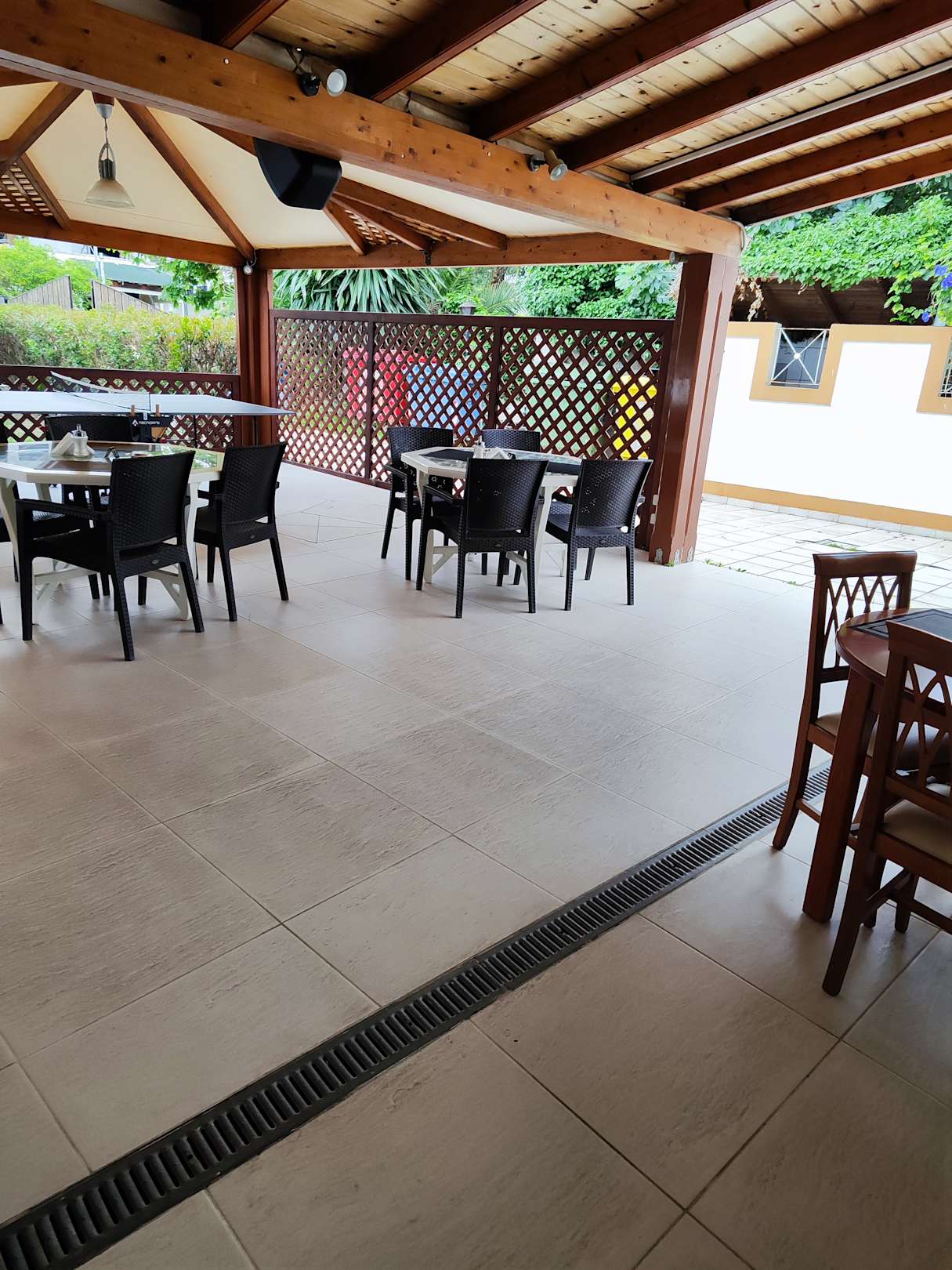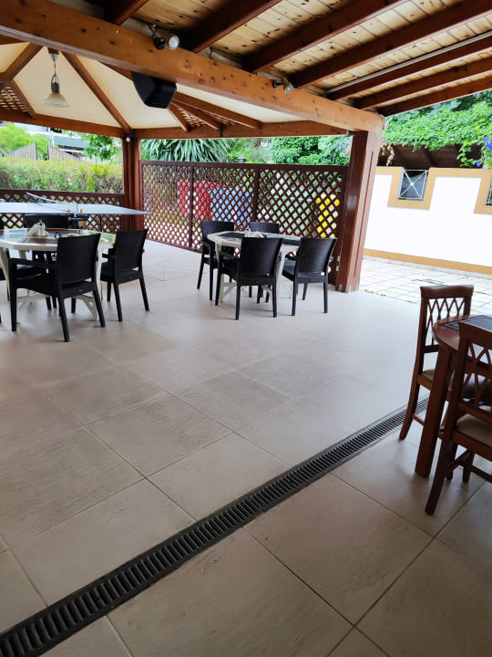 Außenbereich. Auch hier kann man Essen.