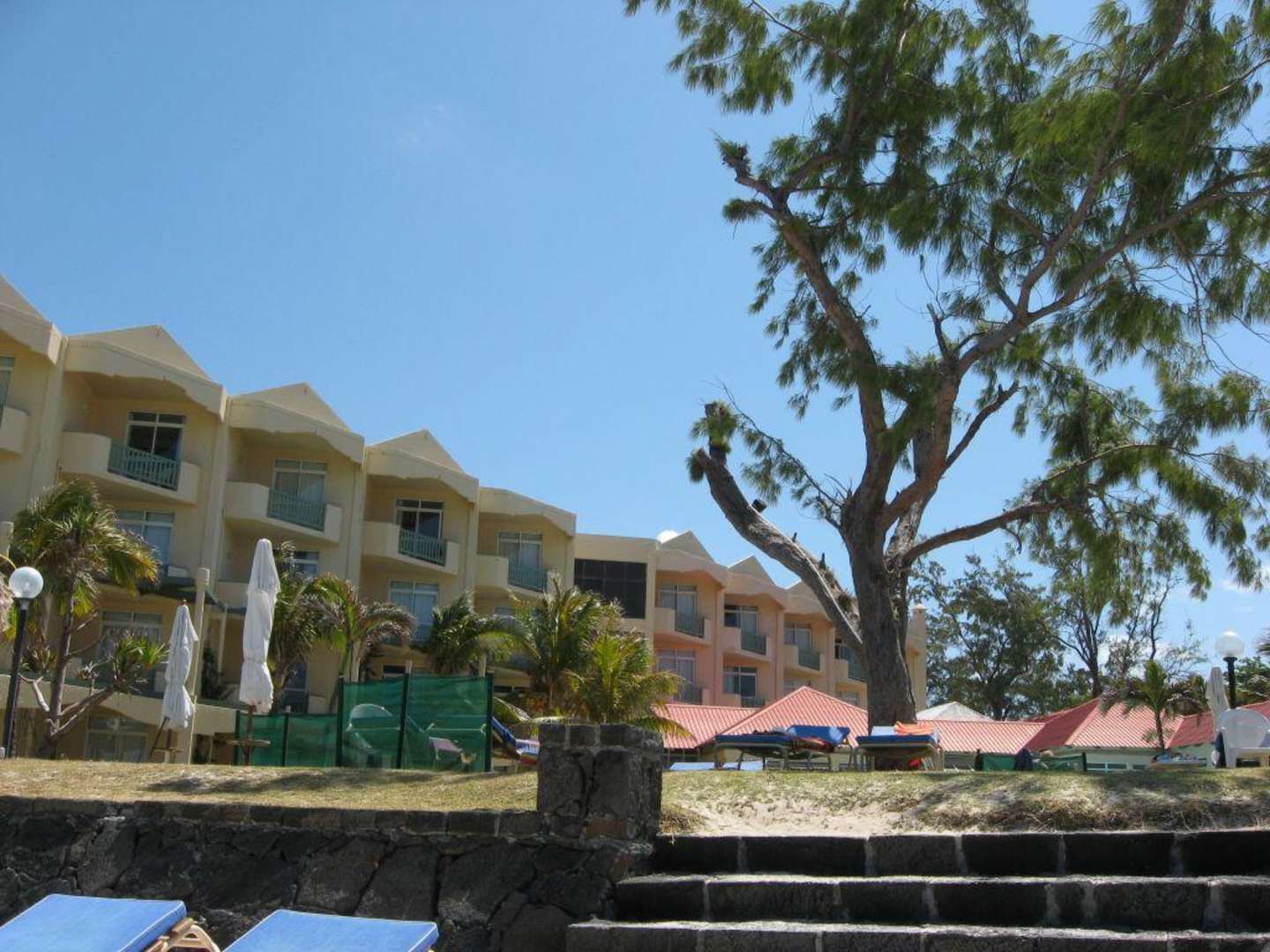 Blick vom Strand aufs Hauptgebäute