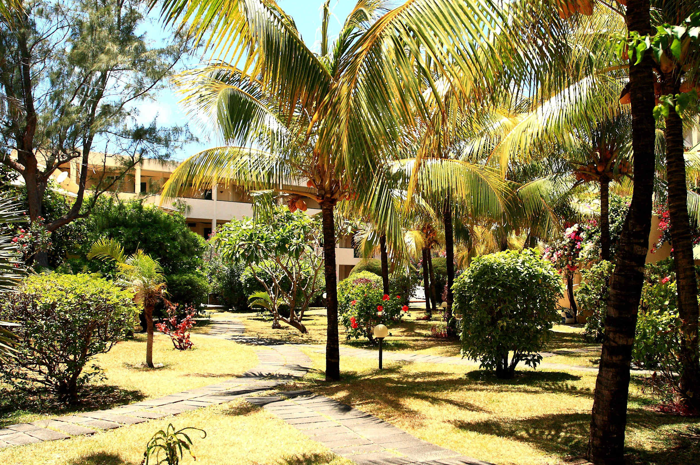 Tropischer Garten mit Blick auf das Haupthaus