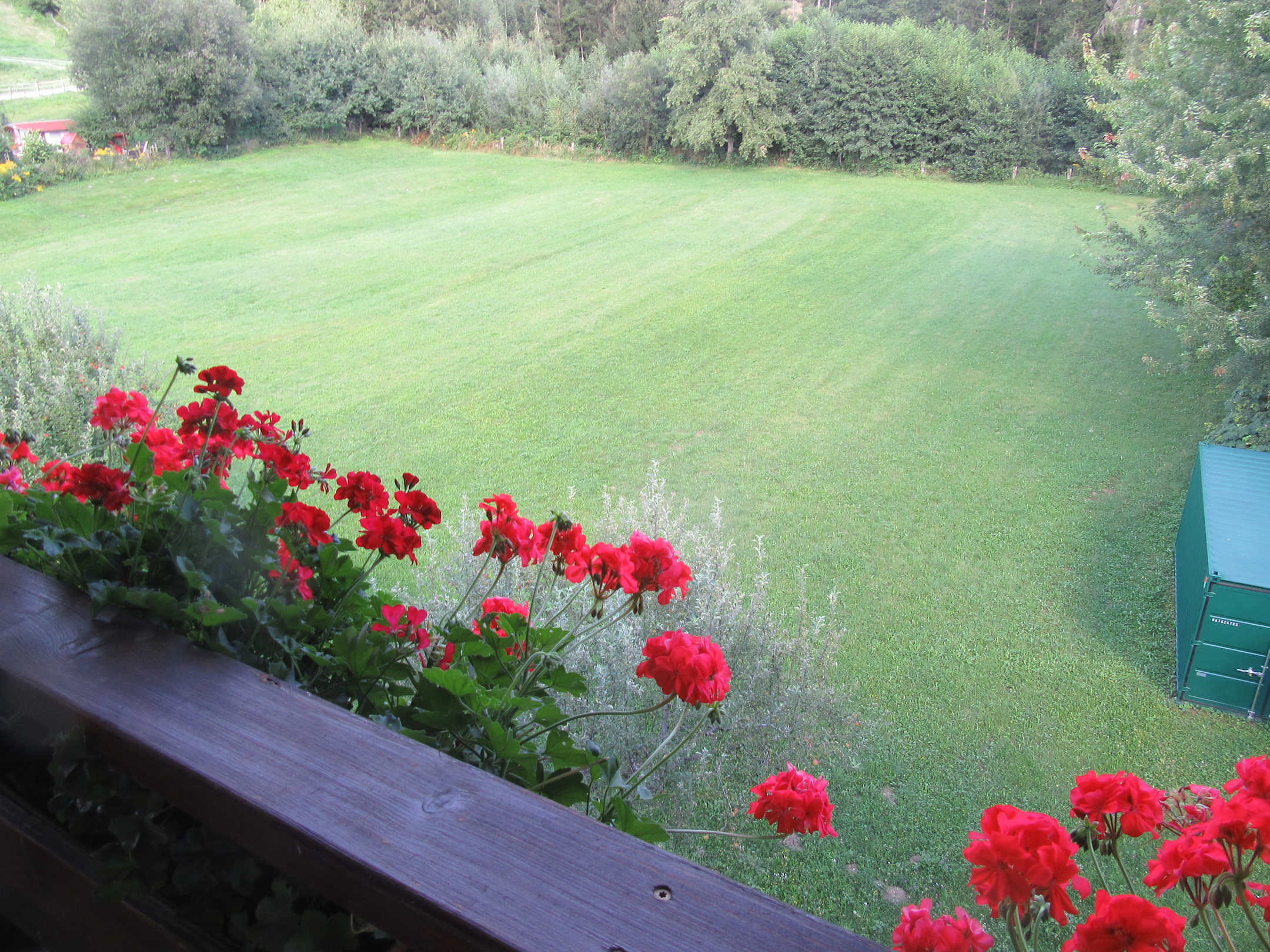 Ausblick vom Balkon ins Grüne.