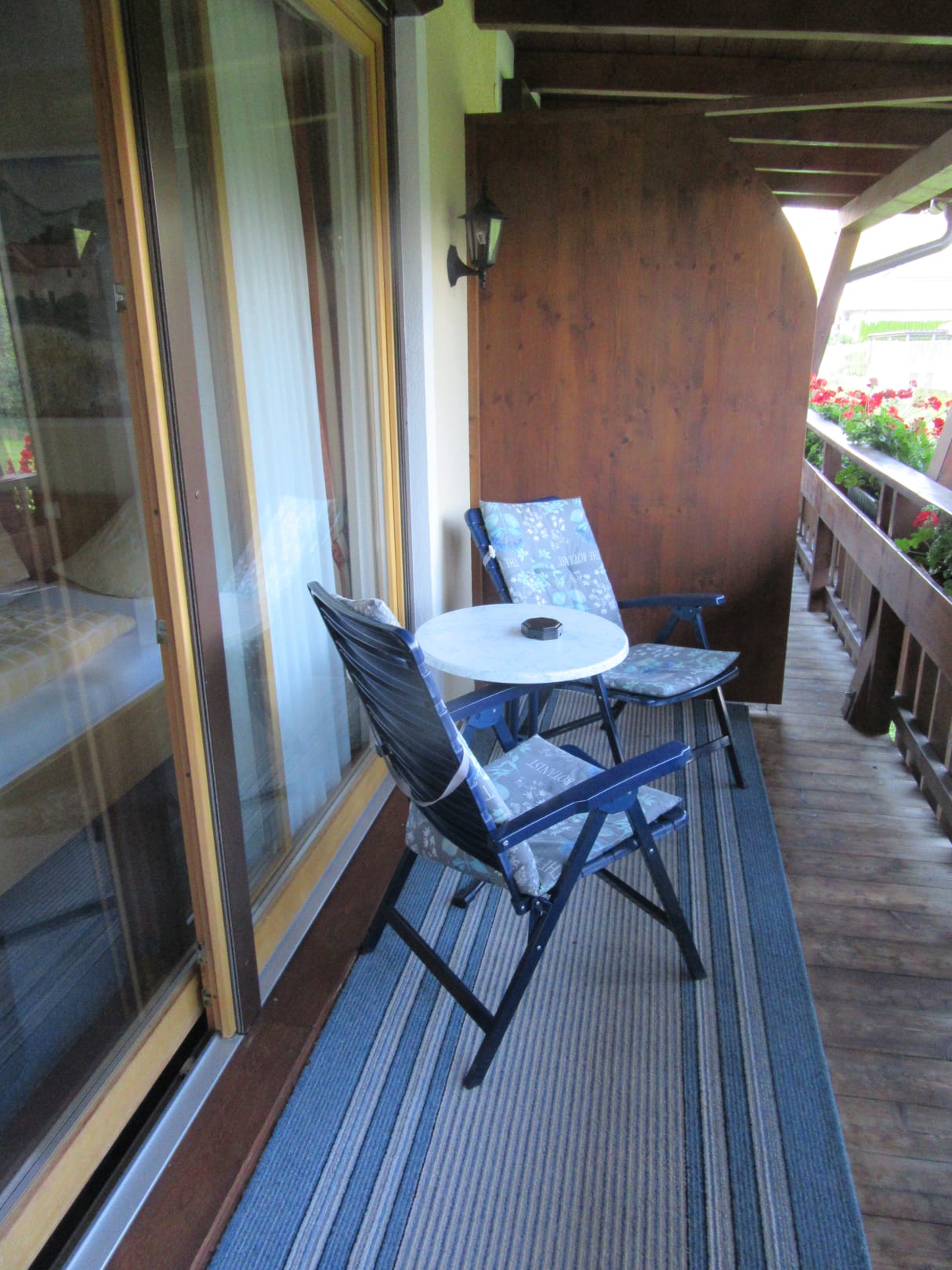 Großer Balkon mit Panoramaschiebefenstern.