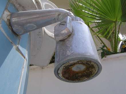 vergammelte und dreckige Duschanlage am Pool.