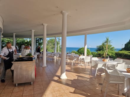 Der Außenbereich des "Restaurants" mit geringer Anzahl an Tischen