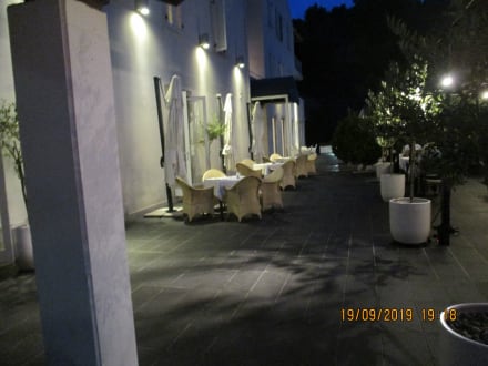 Abends vor dem Eingang Hotel Sipan