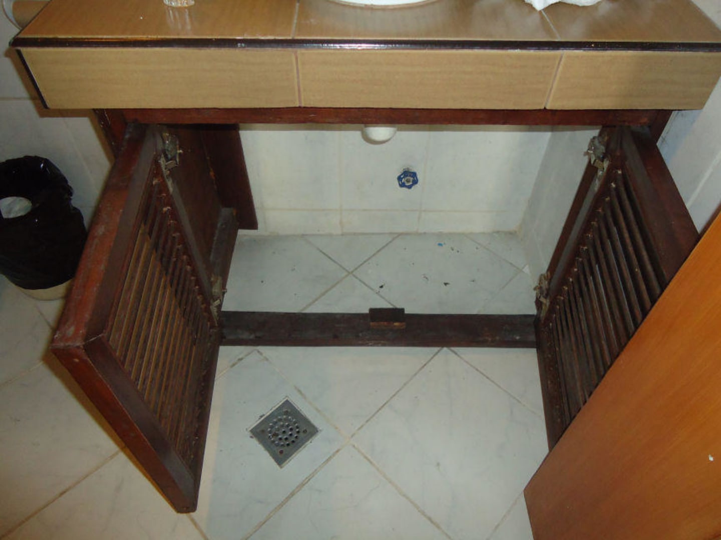 Kot im Schrank unter dem Waschbecken