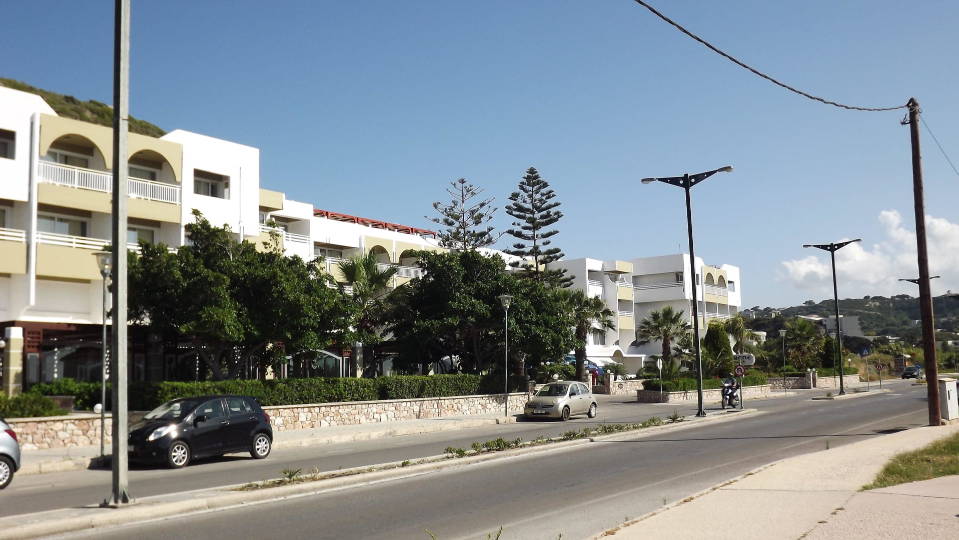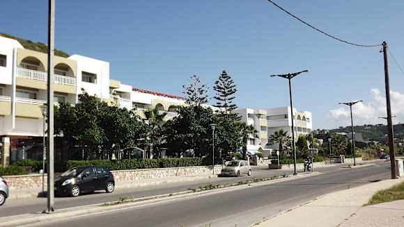 Meerblick-Seite mit Strasse vor dem Hotel