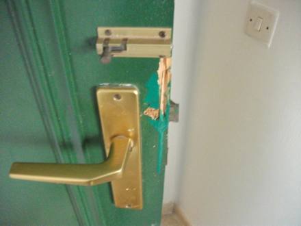 überall im Appartement zerbrochene Türrahmen
