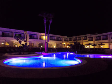 Der Pool im Serenity-Bereich mit abendlicher Beleuchtung.