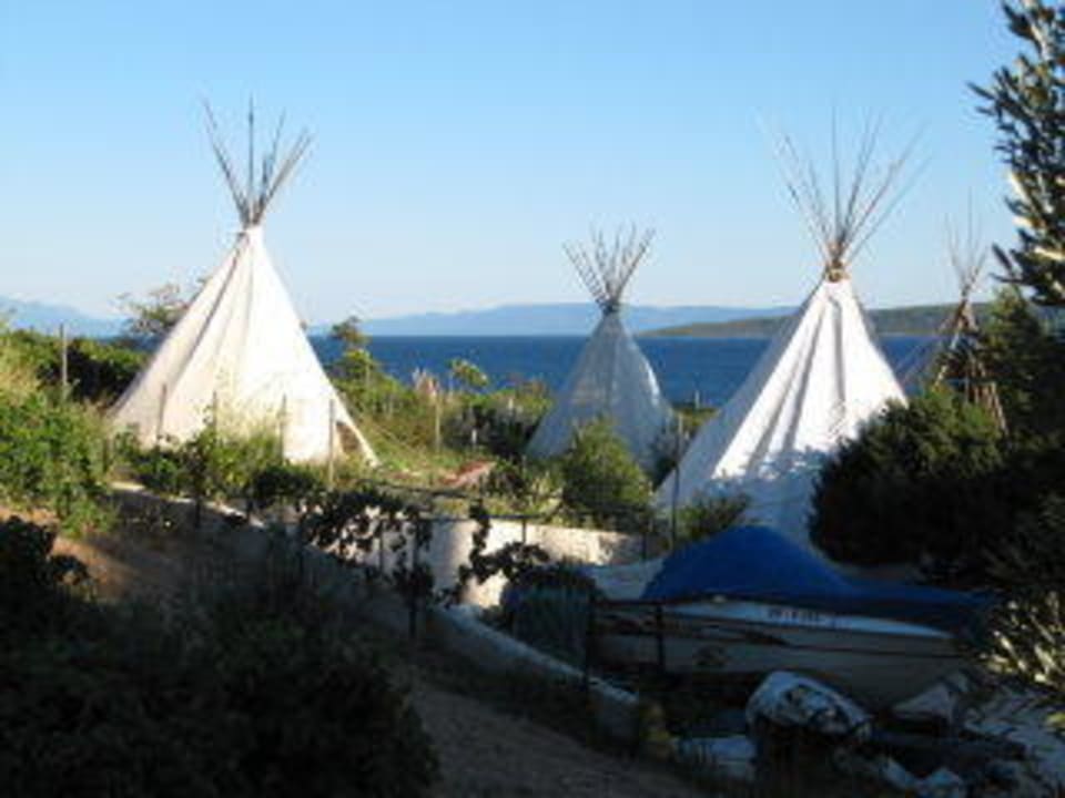 Die "Wellness-Zelte" im Garten des Hotels