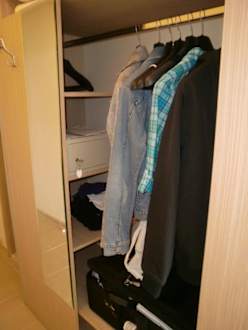 Der im Zimmer befindliche offene Wandschrank
