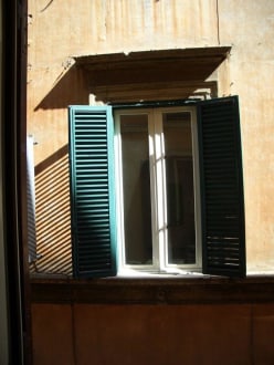 Blick aus dem Hotelzimmer in Richtung Gasse