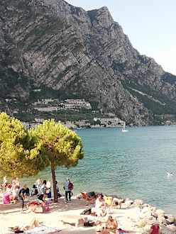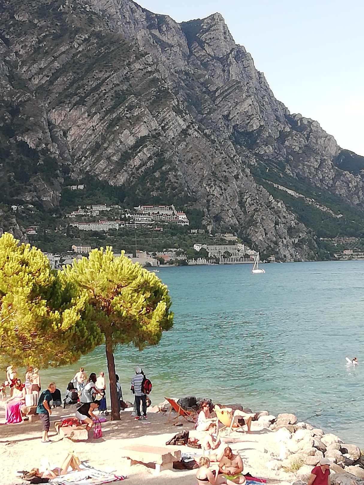 Strand mit Blick in Altstadt von Limone