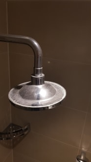 Der leicht verstaubte und verkalkte Duschkopf
